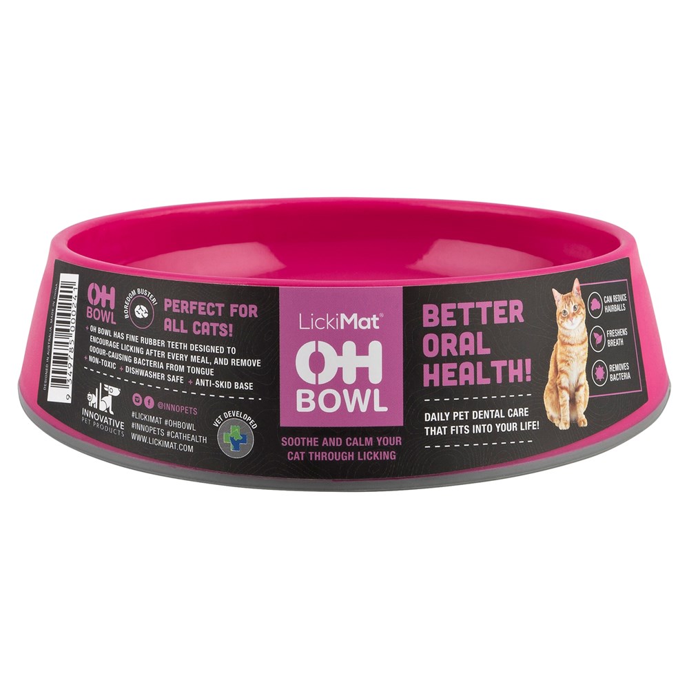 OH Bowl has fine rubber teeth designed to encourage licking after every meal, and remove odour-causing bacteria from tongue.